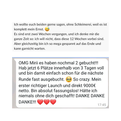 « Dachte auch erst „es wäre aktuell kein Thema“ mache ich ab Q3 und jetzt denke ich mir „holy — bin ich froh, dass wir das alles jetzt schon in Angriff nehmen.“ Zumal wir ja auch noch die anderen Angebote und deren Positionierung besprochen werden! Liebs! Would definitely recommend! 🩷»