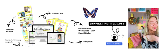 Mit Lara im 1:1 entwickelst du deine strategische Angebotswelt – damit Traumkundinnen nicht nur deinen Online-Kurs kaufen sondern immer wieder bei dir buchen!